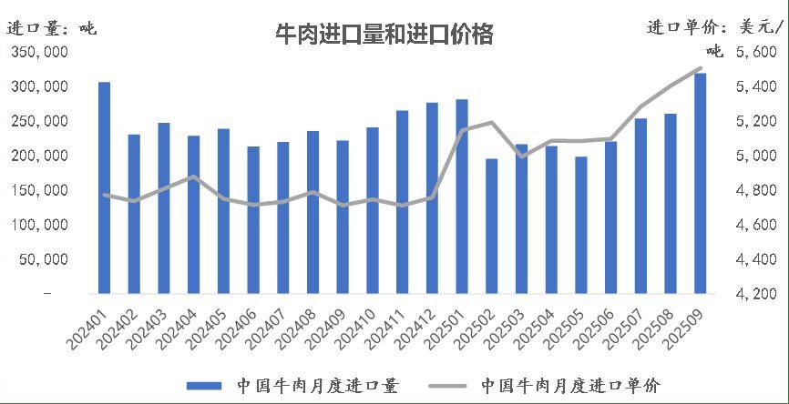 宝博体育,宝博,宝博体育官网,宝博app下载,宝博体育网址,宝博体育官方网站,宝博体育注册,宝博体育靠谱吗,宝博体育登录,宝博体育入口,宝博体育注册,宝博官方网站,宝博APP,宝博注册,宝博网址2025年,中国牛肉进口波动性显著高于往年。开年以后,牛肉进口量连续5月同比下降,1-5月累计进口量110万吨,同比降幅高达11.7%,为近5年来同期最大降幅。从6月开始,牛肉进口恢复同比增长,9月进口量接近32万吨,创单月进口量的历史最高记录;1-9月牛肉累计进口量215万吨,也略高于去年同期水平。与此同时,进口牛肉到岸价从年初5100美元/吨涨至9月的5500美元/吨,同比上涨16.8%,为过去两年来的最高点。上半年牛肉进口量出现明显回落,有效缓解了低价进口牛肉对国内市场的冲击,成为肉牛市场回暖的最重要因素之一;而从第三季度开始的牛肉进口量价齐升的局面,又导致下半年肉牛市场供需形势趋于复杂化。