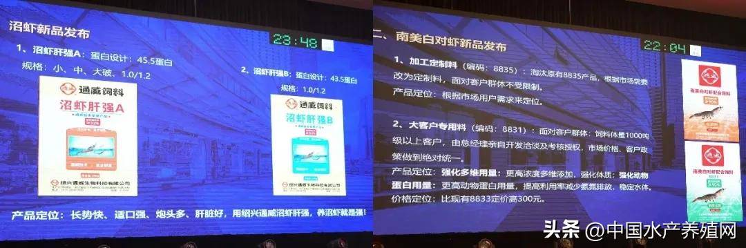 针对当前白对虾价格低迷、发病率高,萧绍市场转养沼虾的行业趋势,严伟诚公布了第二个五年战略规划,明确提出“打造浙江第一沼虾料品牌”的新目标。报告中重点介绍了本次发布的系列新品:沼虾领域推出45.5蛋白的沼虾肝强A与43.5蛋白的沼虾肝强B,凭借≥92%的蛋白消化率,实现长势快、适口强、炮头多、肝脏好的产品定位;南美白对虾领域升级推出加工定制料(编码8835)和大客户专用料(编码8831),后者针对千吨级以上客户,强化多维与动物蛋白用量。